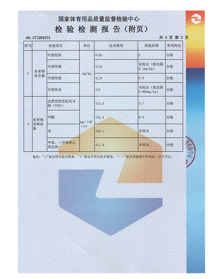 硅PU球场样块检验报告