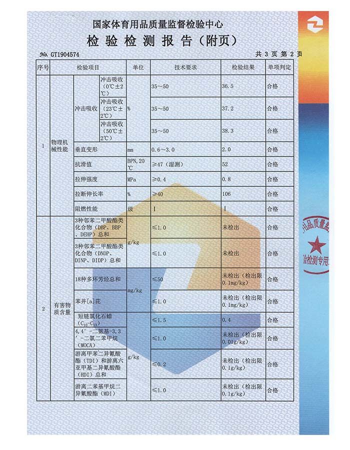 硅PU球场样块检验报告