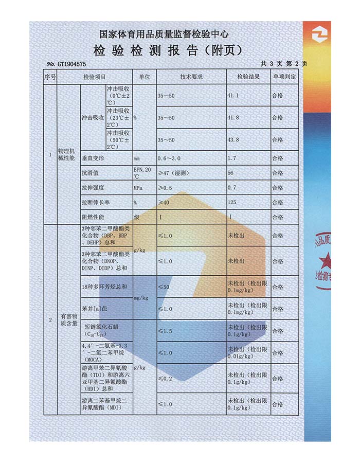 硅PU球场样块检验报告
