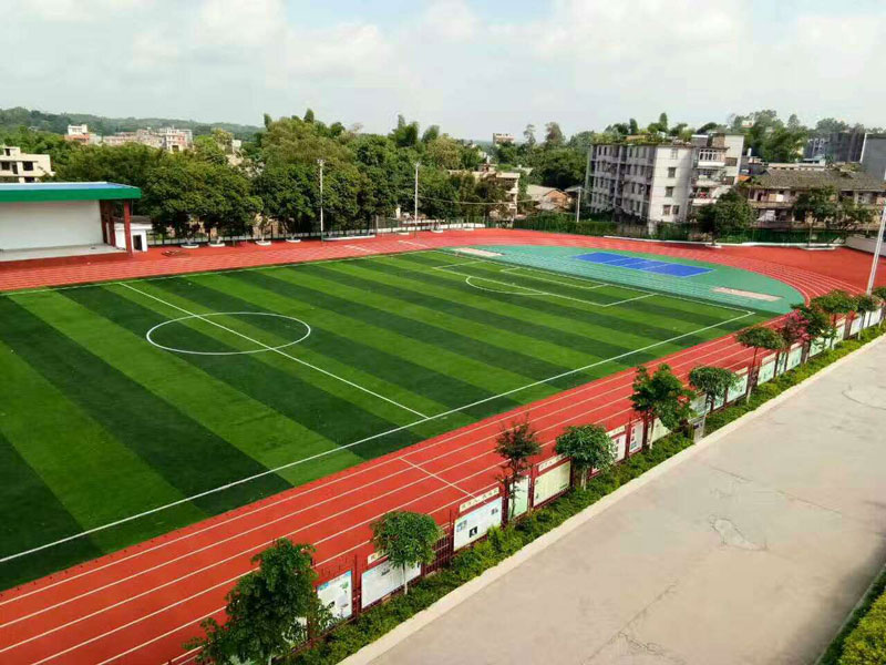 使用材料: 400米混合型跑道+人造草