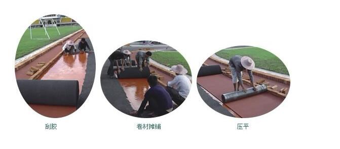 具有安全、环保、优异的耐候性,经济耐用,多色彩效果。安装便捷,只需使用我们配套提供的专用粘接剂,在少量人力和机械条件下,即可将跑道卷材铺贴在密实的基础上,安装完全跑道在24小时后即可投入正常的使用。而且具有免维护的特点。